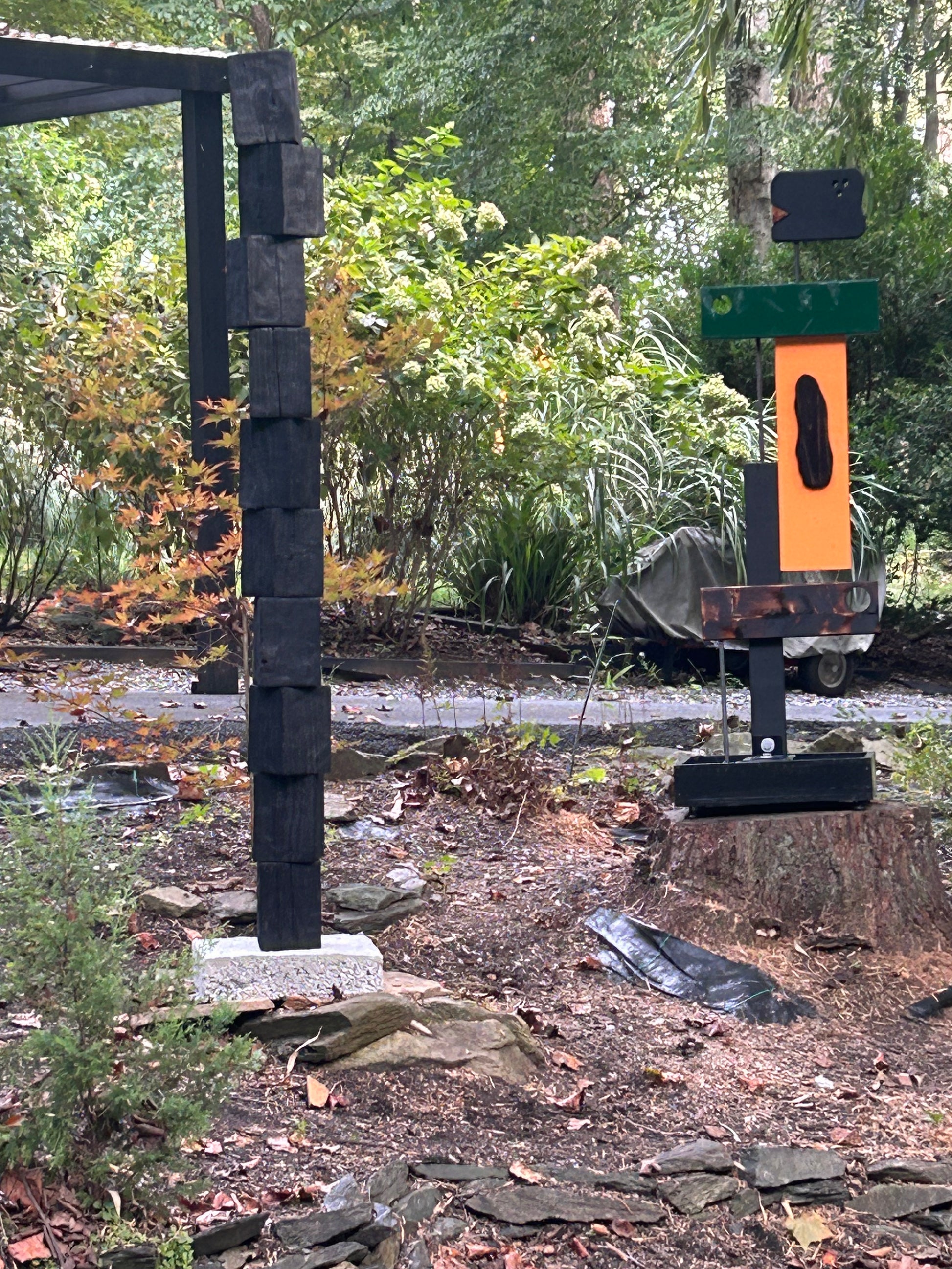 Modular, Randomly-Assembled Totem in Shou Sugi Ban and Linseed Oil finish, based on 6x6 Douglas Fir blank. ***Because of the use of a concrete base, Totem #43 is currently for sale to local buyers only, i.e., those within 3 hours of DC, which includes free delivery and installation. ***